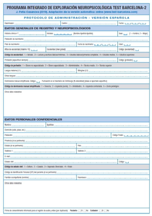Protocolos y hojas del paciente 25 unidades para Test Barcelona-2.