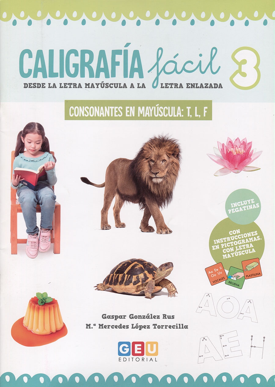 Este cuaderno en concreto, trabaja las consonantes en mayúscula: T, L y F.