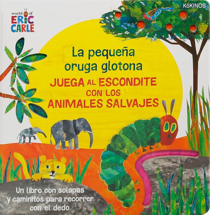 ¡Ven a jugar! ¡Vamos a explorar la sabana! La pequeña oruga glotona tiene ganas de jugar al escondite, pero esta vez, en la sabana, con los animales salvajes.