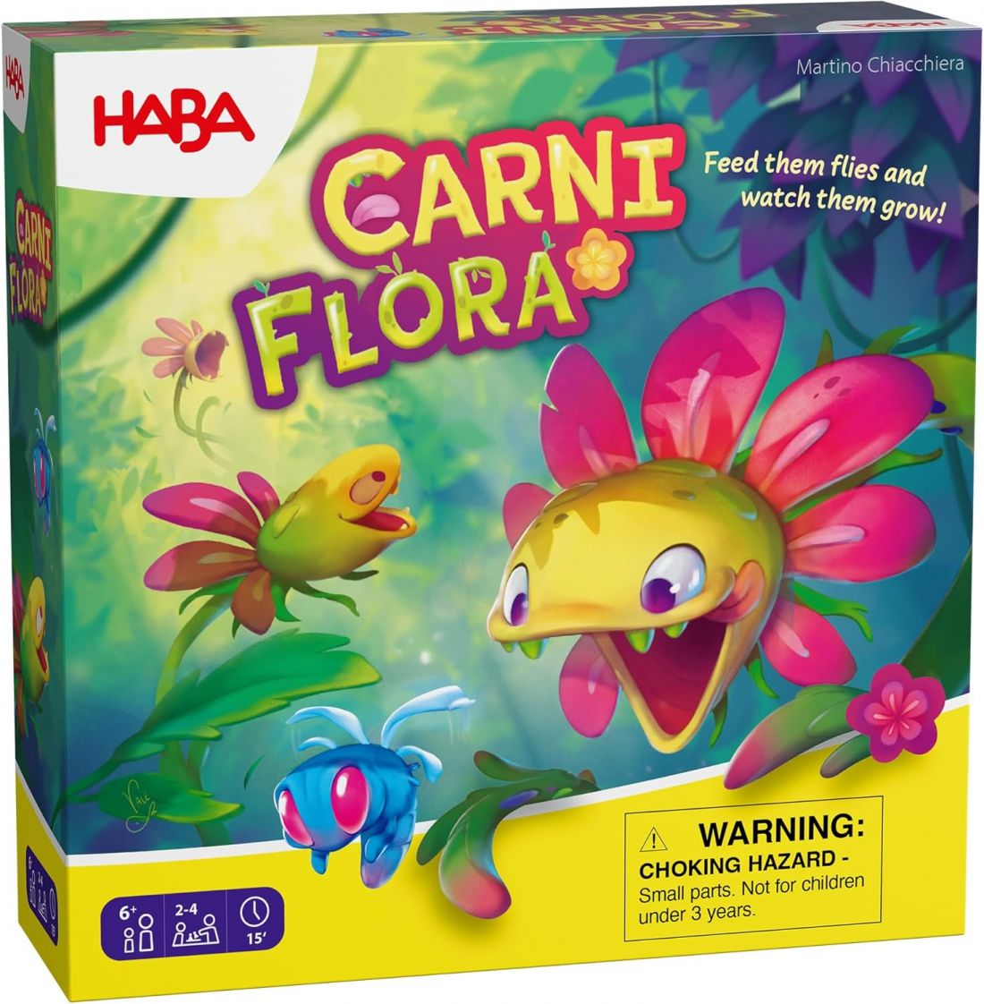 Carni Flora es un juego de mesa para niños donde los jugadores/as tendrán que alimentarse como plantas carnívoras que interpretarán tratando de cazar la mayor cantidad de moscas.