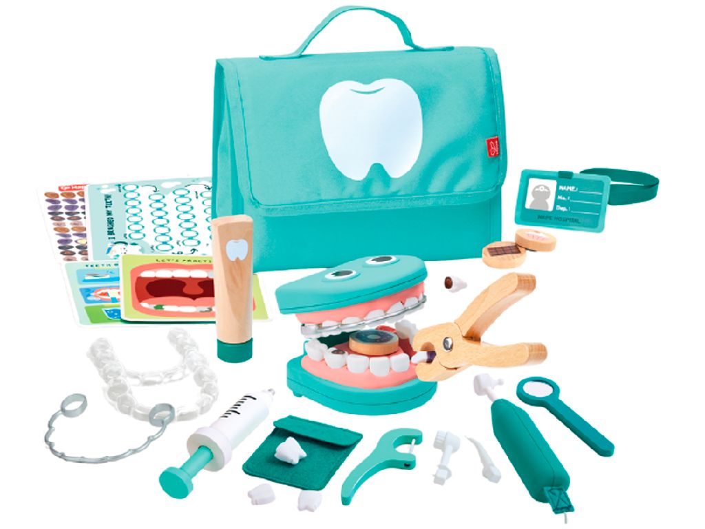 Haz que el cuidado dental sea divertido con este maletín repleto de herramientas realistas como un cepillo de dientes vibrador, hilo dental y dientes de juguete, este set permite a los niños jugar a ser dentistas mientras aprenden sobre higiene bucal.