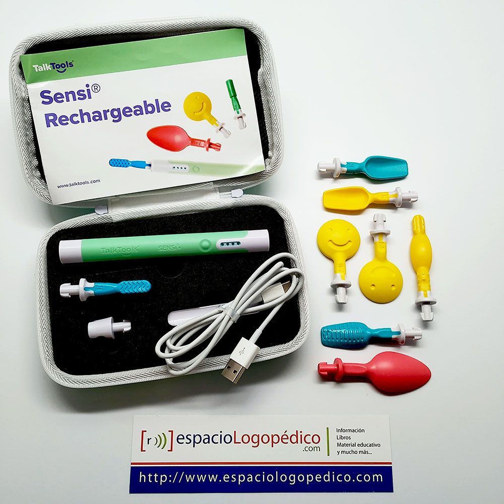 Incluye un Sensi recargable de color verde menta, ocho puntas sensoriales libres de BPA de motor oral, un estuche de almacenamiento y un manual de Sensi.