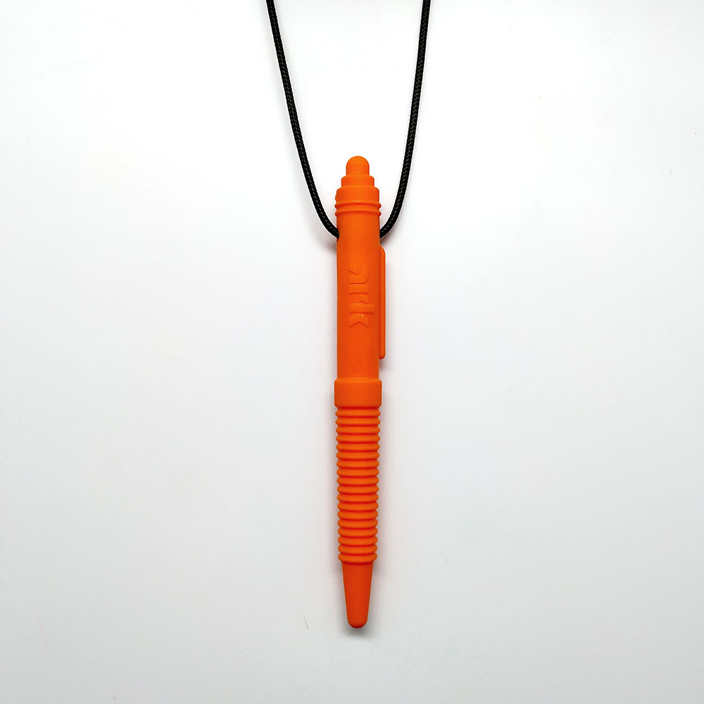 Diseñado para alcanzar las muelas posteriores, su forma de bolígrafo es un excelente y discreto juguete masticable para adolescentes y adultos.