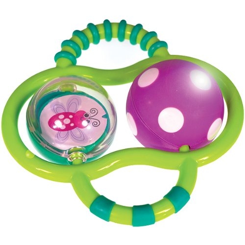 Las bolas tienen distintas texturas, el bebé lo puede tomar de las asas y hacer girar las bolas. Al girar las bolas se ilumina lo que capta la atención del niño.